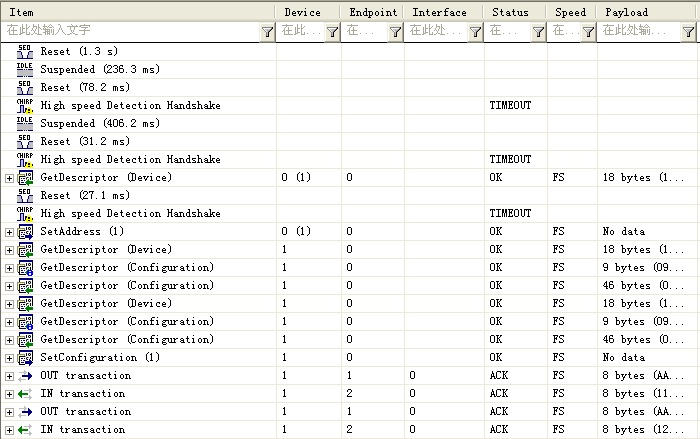 另外,USB協(xié)議分析儀是一種很好的學(xué)習(xí)USB協(xié)議的工具,如圖所示,通過(guò)USB協(xié)議分析儀可分析并了解USB設(shè)備枚舉過(guò)程,在教學(xué)中可以生動(dòng)地說(shuō)明USB通信傳輸過(guò)程,在實(shí)際研發(fā)中,也可提高效率,縮短開(kāi)發(fā)周期。