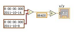 如果我們非常了解LABVIEW的時(shí)間概念,這個問題非常容易解決了。在LABVIEW中所有的時(shí)間日期都可以轉(zhuǎn)換為秒數(shù),這個秒數(shù)相對于某個標(biāo)準(zhǔn)的0點(diǎn)(即0秒所代表的時(shí)間)。對于兩個具體日期時(shí)間的差值,實(shí)際上就是相對于這個0點(diǎn)的秒數(shù)的差值,因此計(jì)算日期差值時(shí)根本不需要考慮閏年、閏月的問題。參見下面的程序框圖。