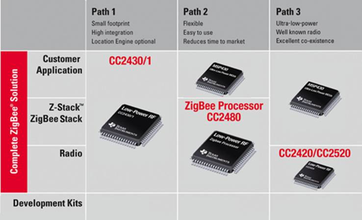 圖1 Zigbee解決方案的多種途徑