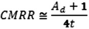 其中Ad是差動(dòng)放大器的增益,而t則是電阻的容錯(cuò)度。因此對(duì)于增益為1與1%電阻,CMRR=50V/V,或是大約為34分貝,而對(duì)于0.1 %電阻,CMRR=500V/V,或是大約為54分貝。以上的公式可以應(yīng)用在低頻率。在較高頻率下,CMRR甚至可能會(huì)更進(jìn)一步的降級(jí)。舉例來說,假如在兩組運(yùn)算放大器輸入端輸入電容的差異為400~500毫微微法拉(肇因于PC電路板布局或是內(nèi)部芯片布局),而電阻值為10千奧姆(kΩ),那么在10kHz下的交流電CMRR會(huì)降級(jí)6~7分貝。假如在系統(tǒng)中有一顆20kHz(或是更高)的交換式穩(wěn)壓器,那么這點(diǎn)就會(huì)很重要。即使是利用完美的電阻與經(jīng)過平衡的電容,CMRR最終仍然會(huì)受到運(yùn)算放大器的限制。