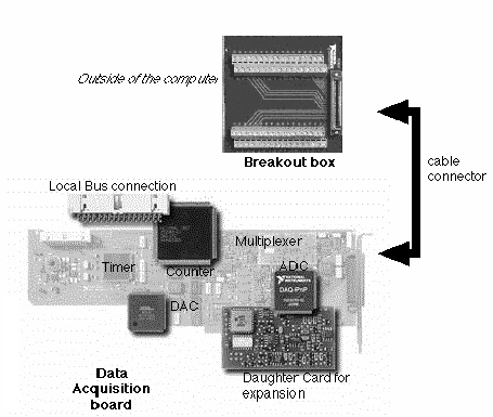 測量信號并將數(shù)據(jù)傳輸?shù)接嬎銠C是通過使用數(shù)據(jù)采集卡(商業(yè)上稱為 DAQ 卡)來完成的。這些卡具有允許輸入/輸出模擬和數(shù)字信號的模擬/數(shù)字轉(zhuǎn)換器 (ADC) 和數(shù)字/模擬轉(zhuǎn)換器 (DAC)。