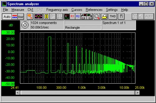 8K長度的頻譜記錄。與示波器同時用,用戶能在時域和頻域同時觀測信號。用先進的繪圖功能直接調節(jié)水平和垂直的偏移和增益。五個不同的窗口減小快速富立葉變換的錯誤,包絡線測量。垂直軸表示線性和對數頻率軸代表線性,對數,倍頻和三次倍頻。測量的平均值能減少噪音的干擾。測量最大值。總的諧波失真計算直到100次諧波。外部游標測量。所有設置得通過彈出的菜單訪問。 存儲和重放基本信號。用工具欄快速按鈕很容易訪問所有的功能。注釋標簽可對所采集的信號中突發(fā)事件進行標注。彩色硬烤貝支持。所有的控制都有說明解釋。