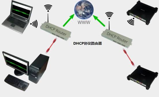 在不同的網(wǎng)絡(luò)中一臺或多臺遠端無線數(shù)據(jù)采集卡可連接到一臺電腦或多臺電腦