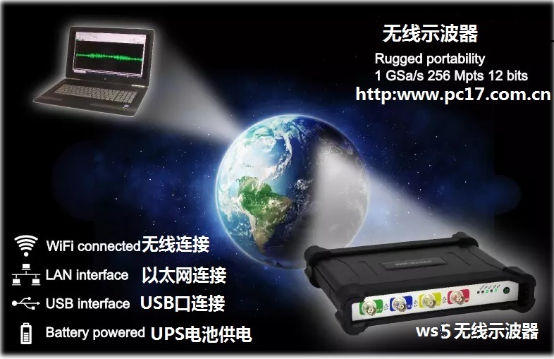 WS5 無線示波器優(yōu)點:1.用WiFi和內(nèi)置電池, UPS不間斷電源,進行無線測量2.可進行移動測量,例如在運輸系統(tǒng)或移動裝置上3.利用網(wǎng)絡(luò)和互聯(lián)網(wǎng)可進行遠程測量4.通過WiFi、網(wǎng)絡(luò)、互聯(lián)網(wǎng)和USB接口進行連續(xù)現(xiàn)場測量5.電流隔離測量,無需與PC進行物理連接6.可單獨應(yīng)用USB3.0總線進行測量和高達200 MSa/s的實時高速瞬態(tài)記錄7.輕松完成WiFi安裝,點擊幾下鼠標(biāo),連接現(xiàn)有的WiFi網(wǎng)絡(luò)熱點自動尋找現(xiàn)有網(wǎng)絡(luò),無需輸入IP地址8.帶有多種示例的SDK,C、C++ C# MathLAB、Labview可方便地將WiFiScope集成到其他應(yīng)用程序中9.網(wǎng)絡(luò)連接(WiFi和LAN)可在世界各地任意進行測量8.快速設(shè)置每種測量類型9.連續(xù)記錄采集的數(shù)據(jù),直到硬盤滿為止10.SafeGround功能保護測量對象安全接地 11.CMI接口線可連接多臺儀器組成多通道采集卡,最多256個通道