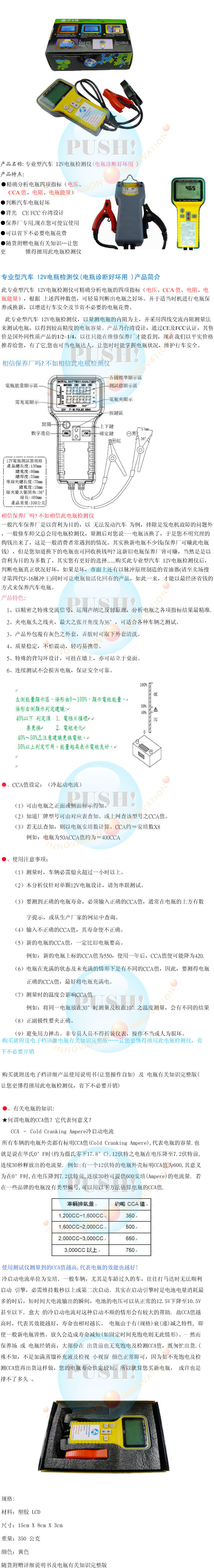 電壓 CCA值 電阻 電瓶能量檢測,12V汽車電平檢測。通過CE及FCC認證。