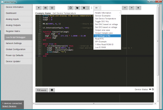 LabjackT4也可獨立構(gòu)成采集模塊,通過運行Lua腳本。